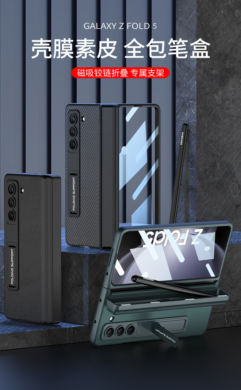 【喜挖】10件組 適用三星Fold5折疊屏手機殼磁吸折疊素皮筆盒殼膜一體全包支架gkk