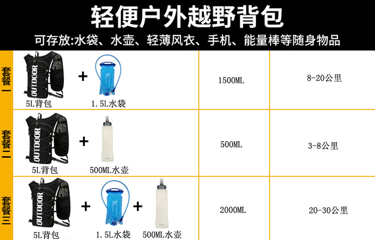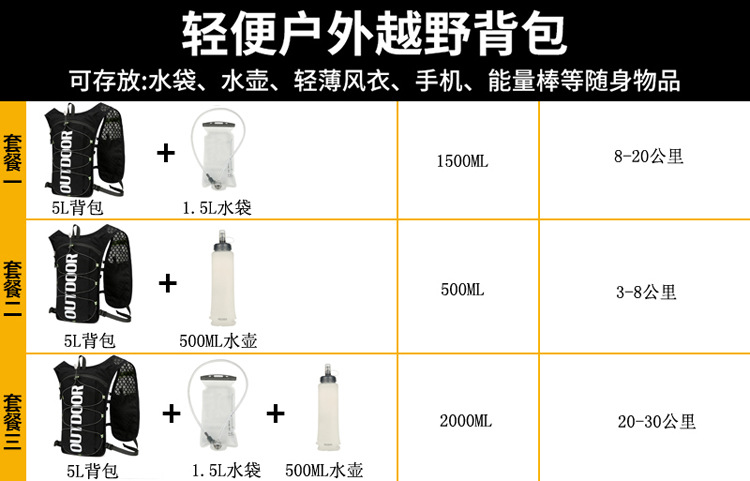 黑色, 單包+500ML水壺+1.5L白色水袋, 10 -