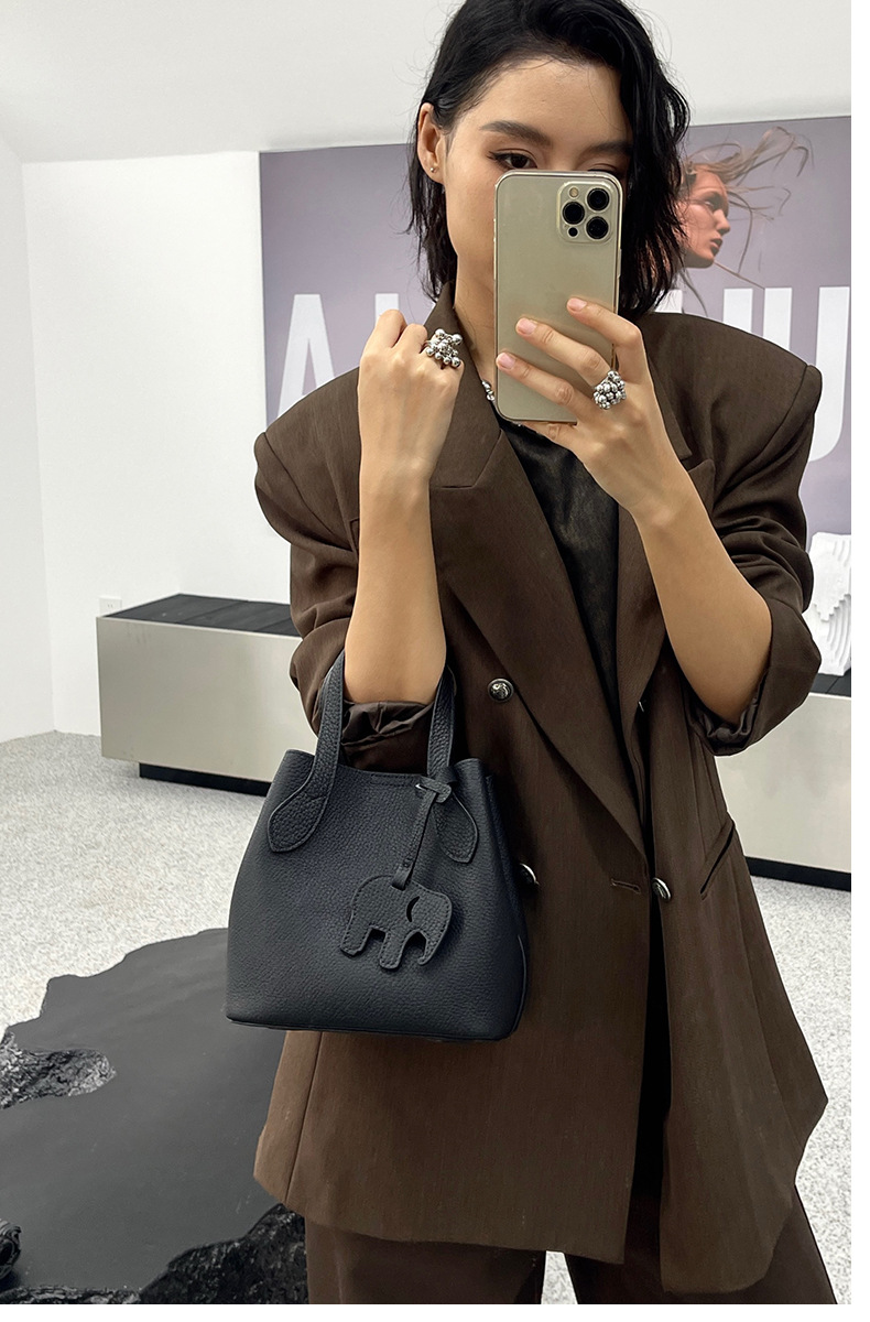 女包2025新款简约小众手提水桶包 时尚高级感通勤真皮单肩斜挎包