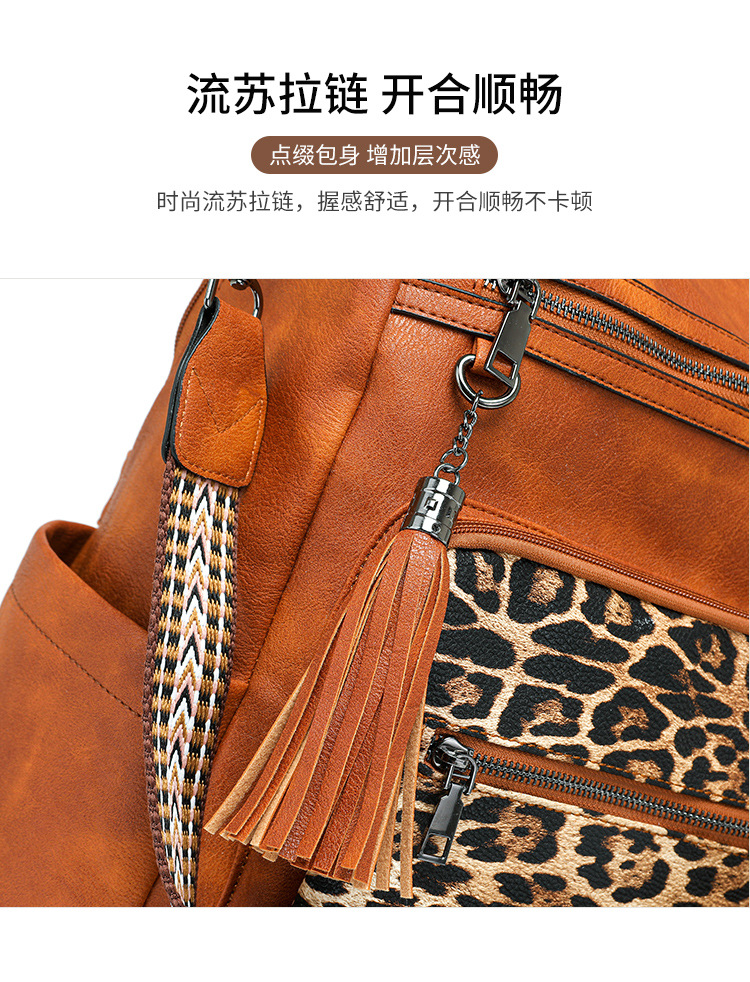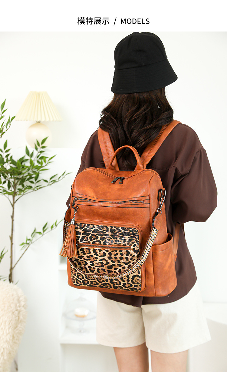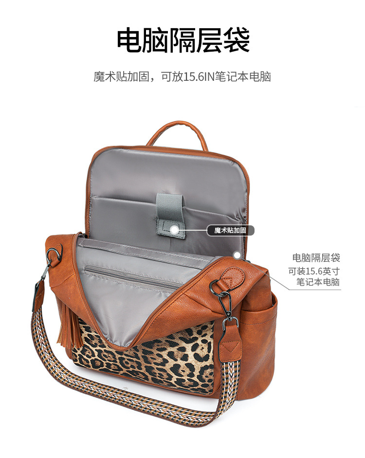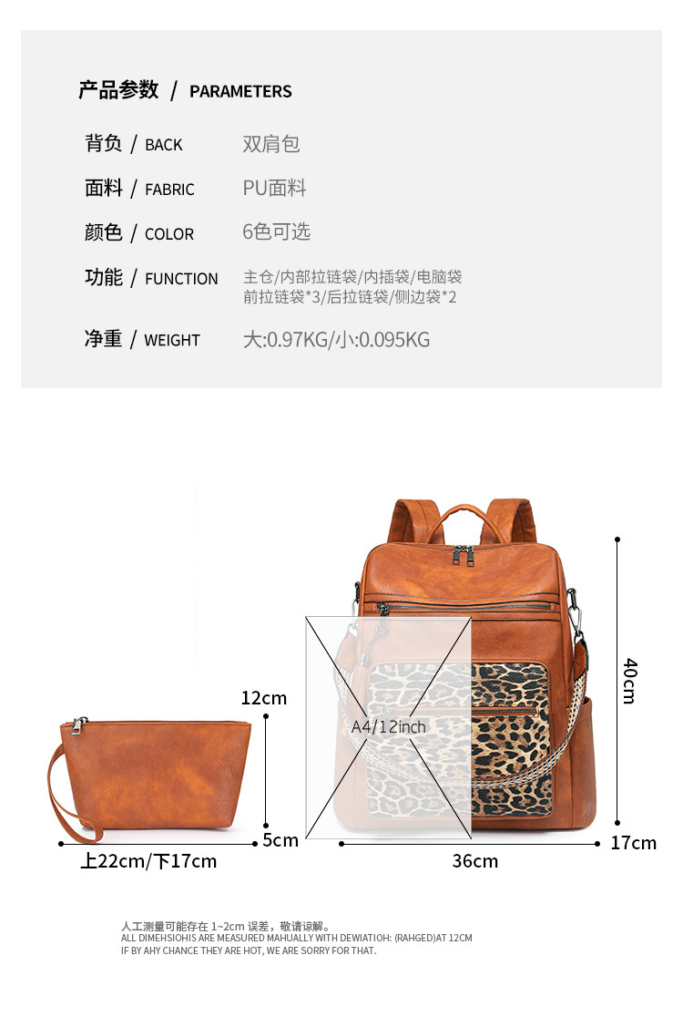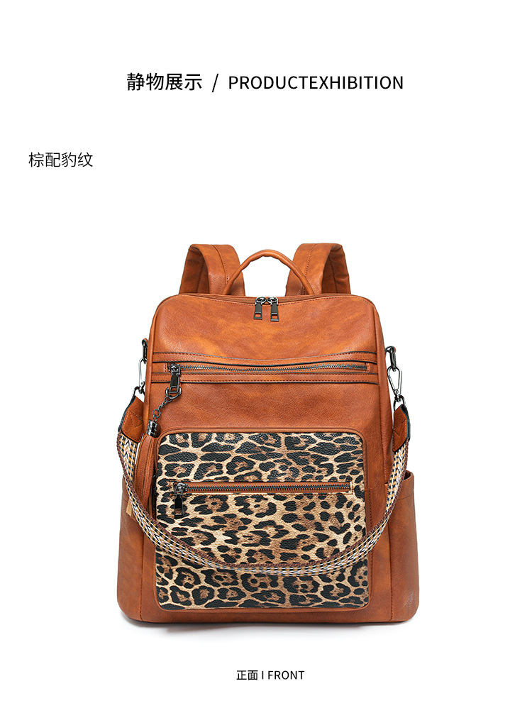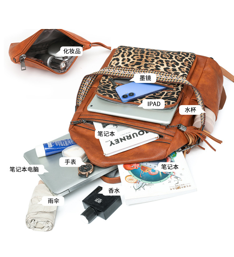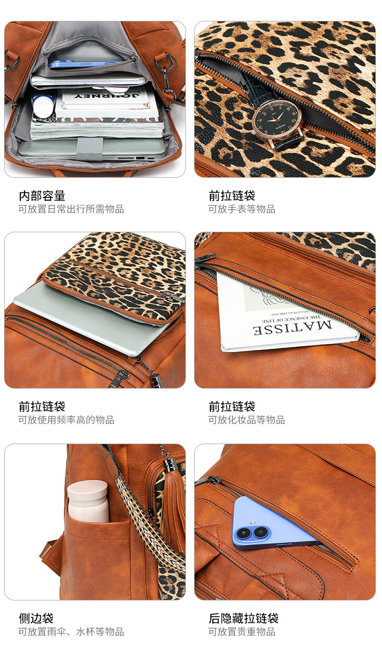 【喜挖】 10件組 新款復古豹紋時尚雙肩包商務包電腦背包大容量雙肩包女士背包
