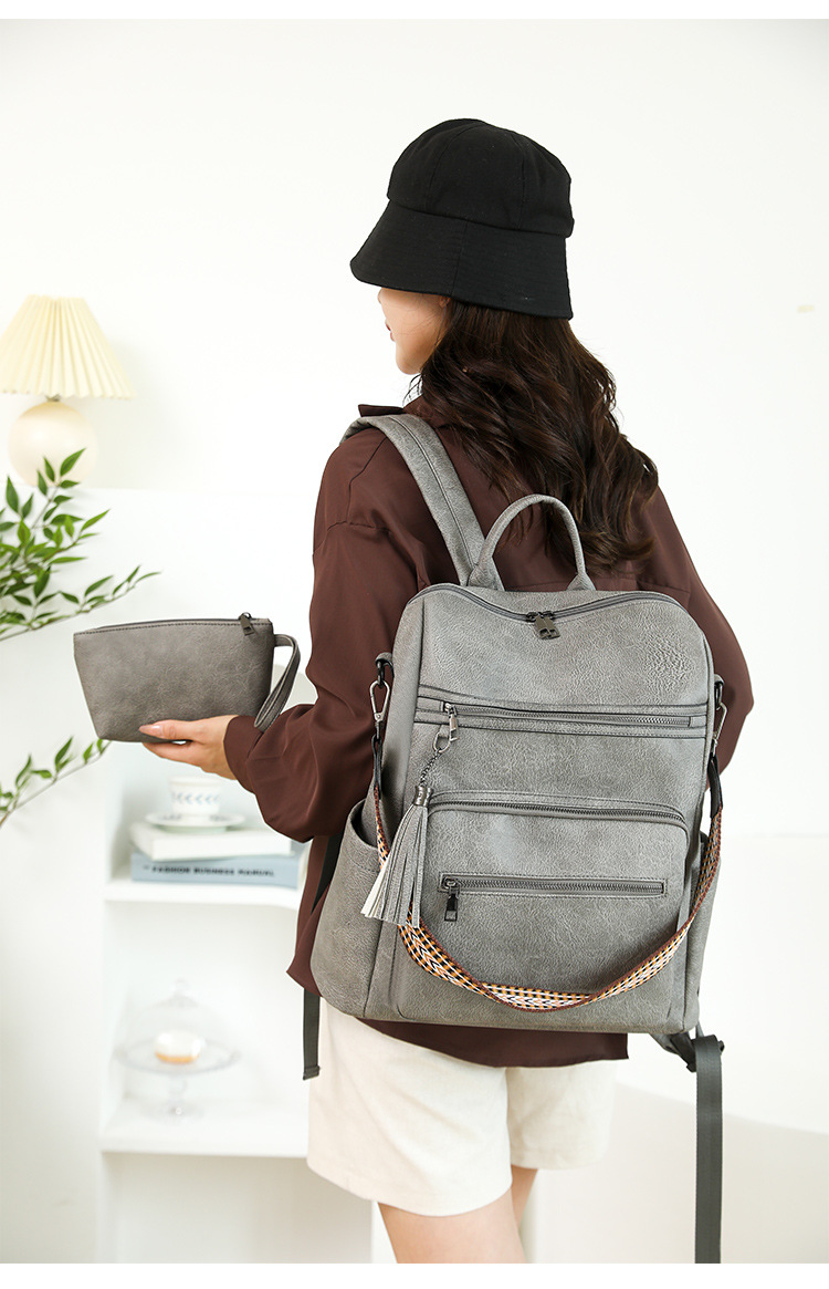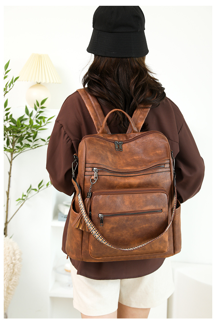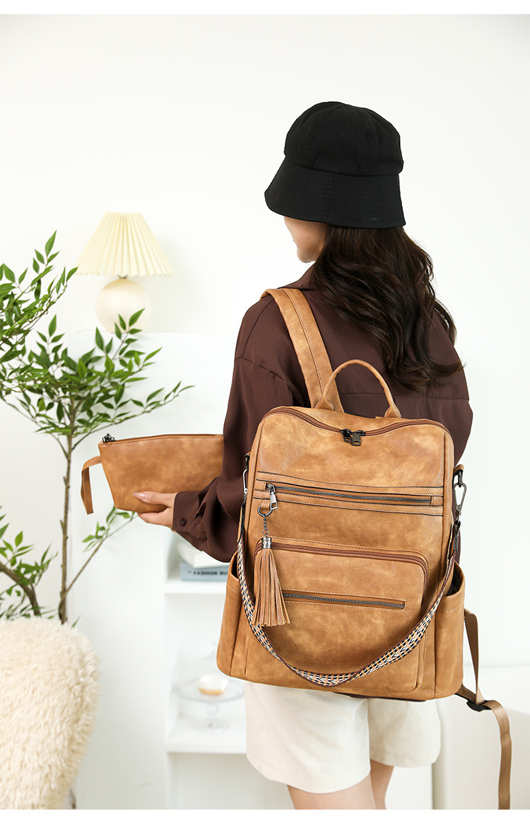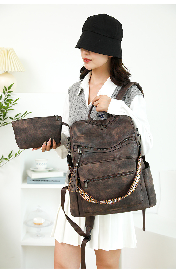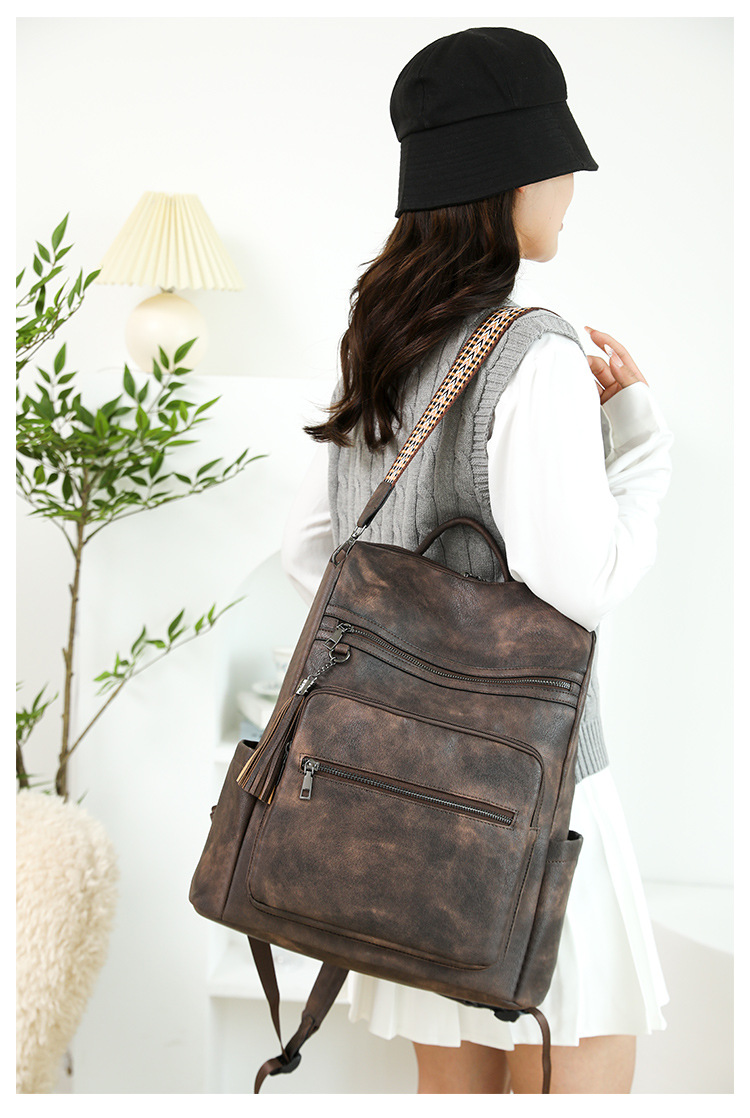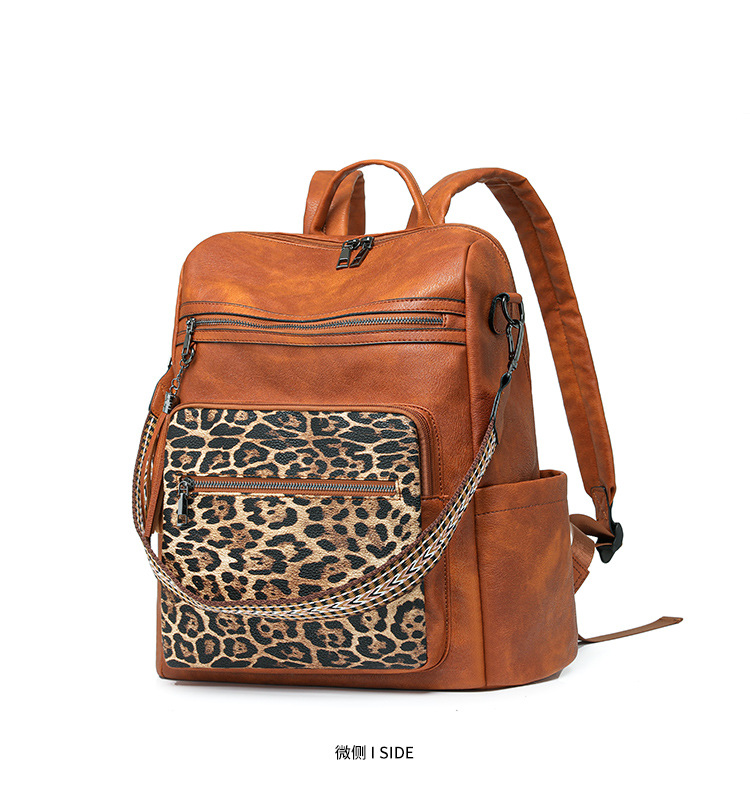 【喜挖】 10件組 新款復古豹紋時尚雙肩包商務包電腦背包大容量雙肩包女士背包