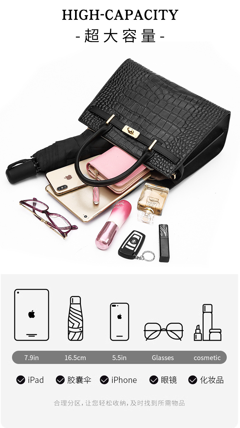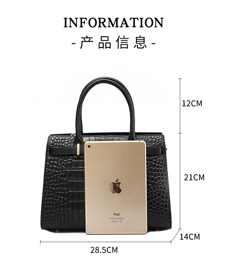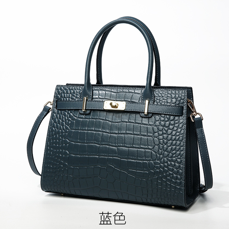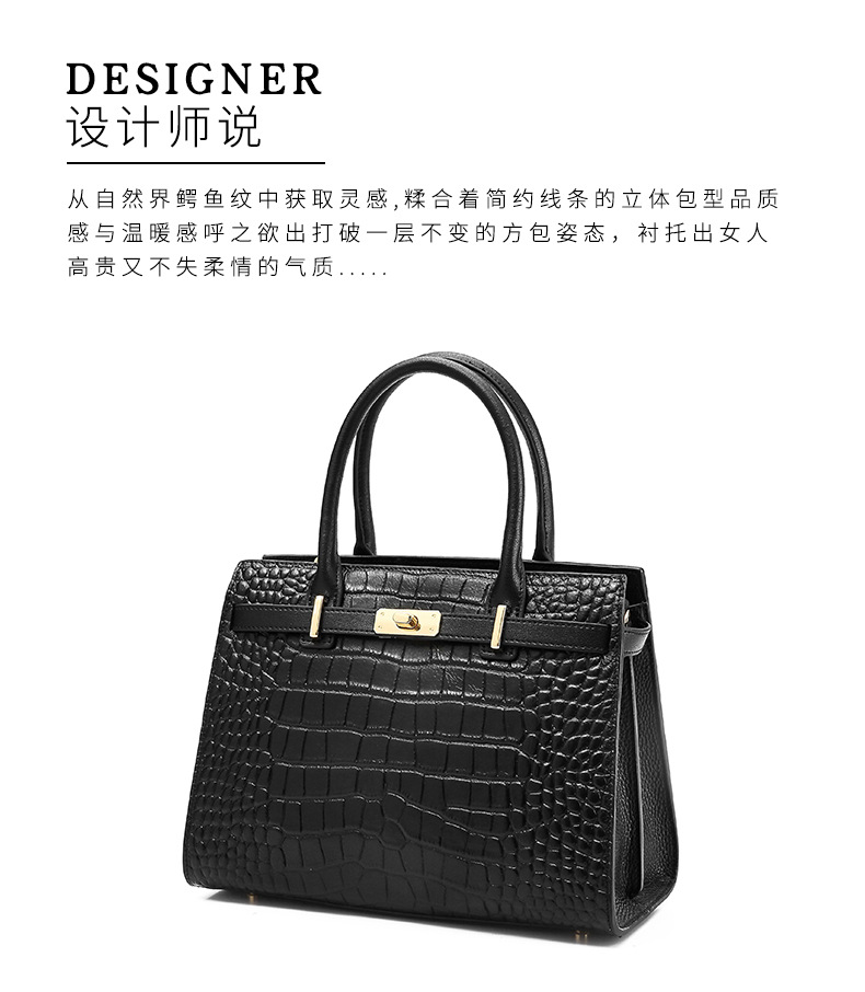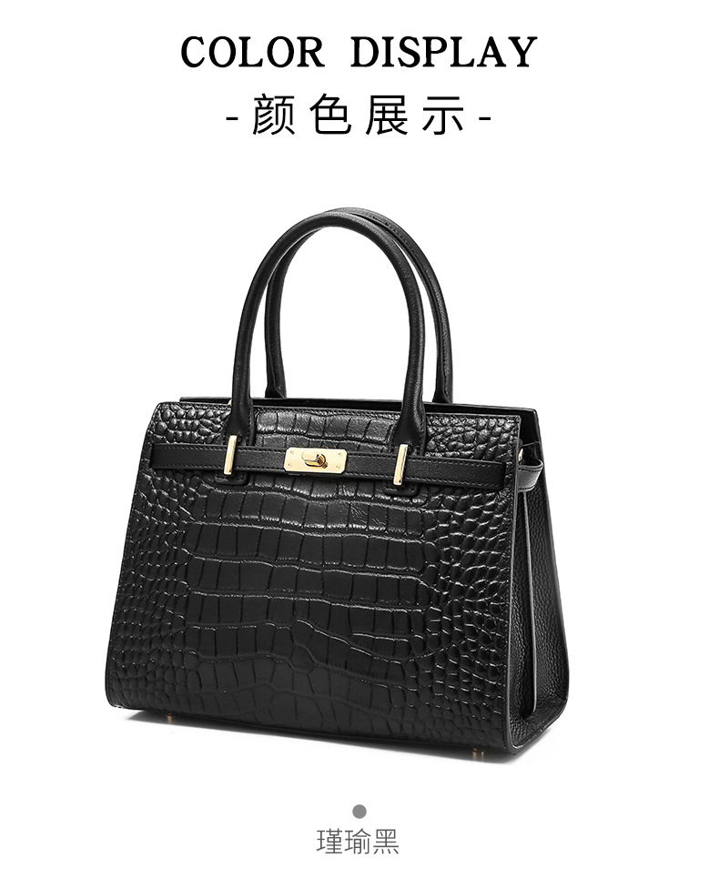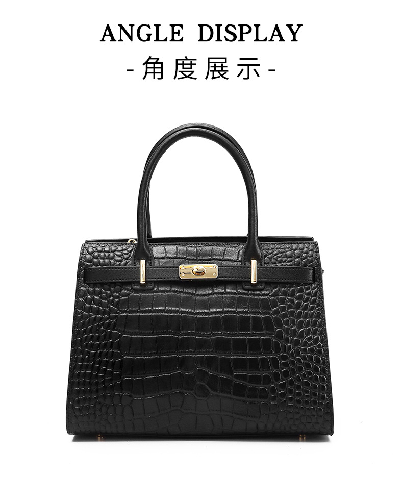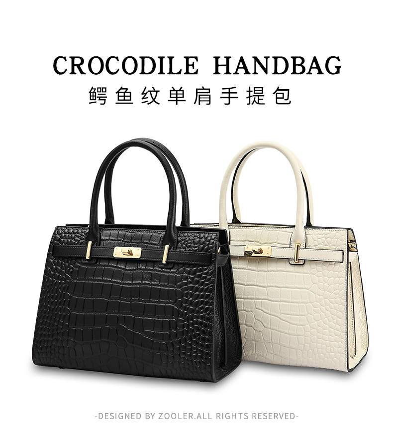 源头工厂定制鳄鱼纹牛皮斜挎包女士手提包大容量高级感真皮凯丽包