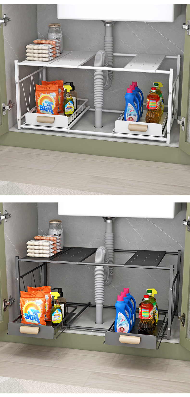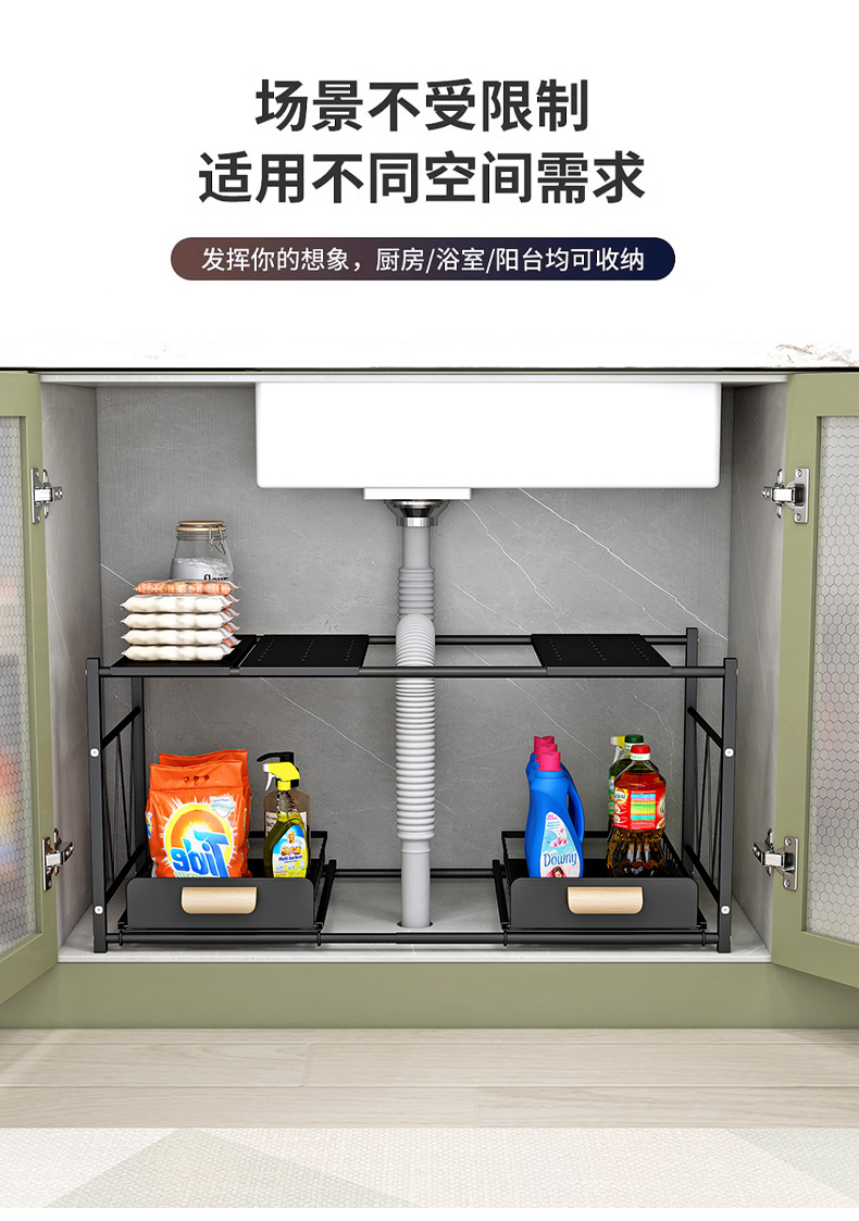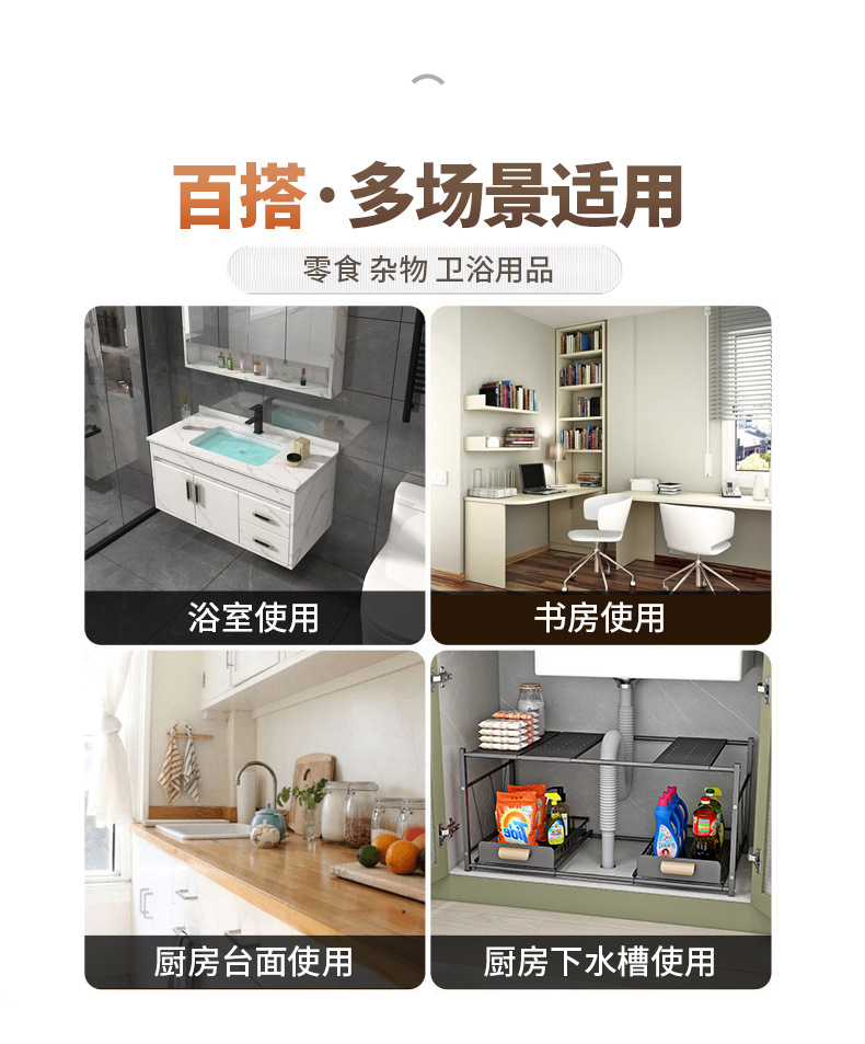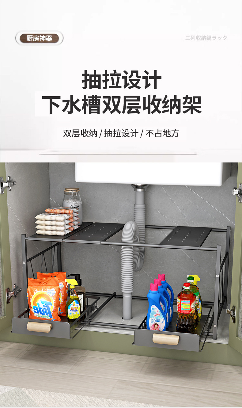 【喜挖】10件組 廚房可伸縮下水槽置物架櫥櫃分層架收納架層架多功能鍋架收納架子