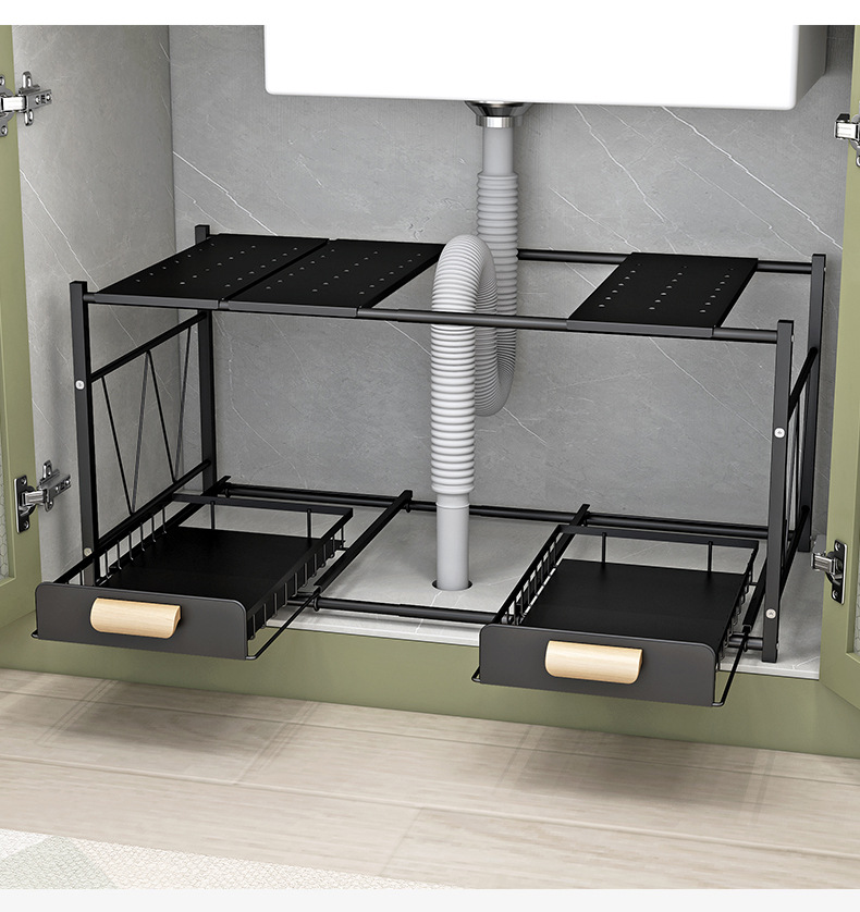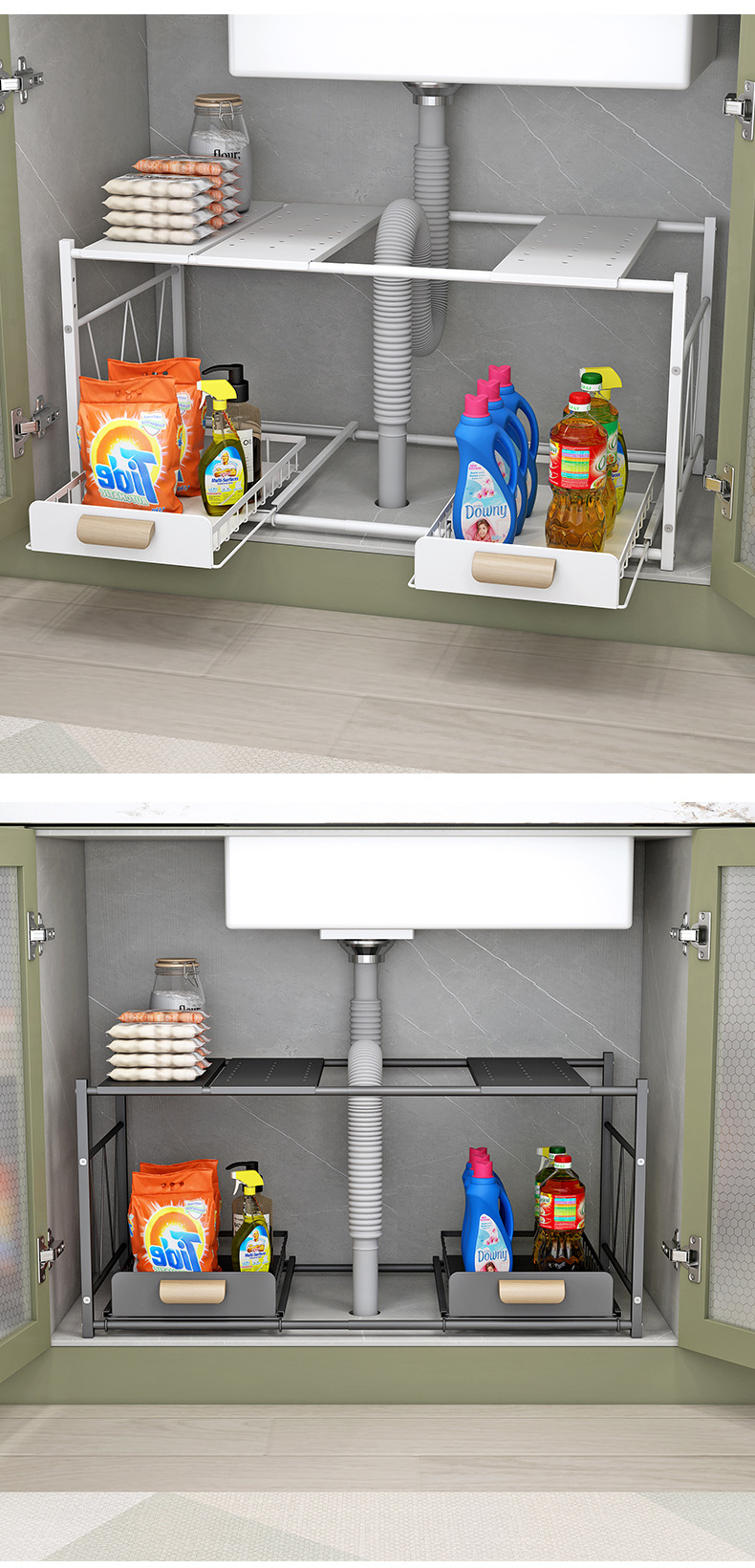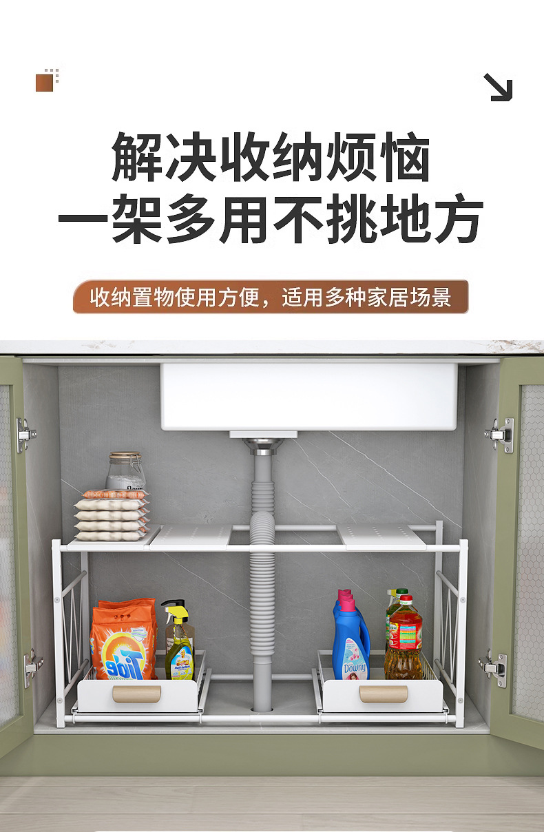 【喜挖】10件組 廚房可伸縮下水槽置物架櫥櫃分層架收納架層架多功能鍋架收納架子