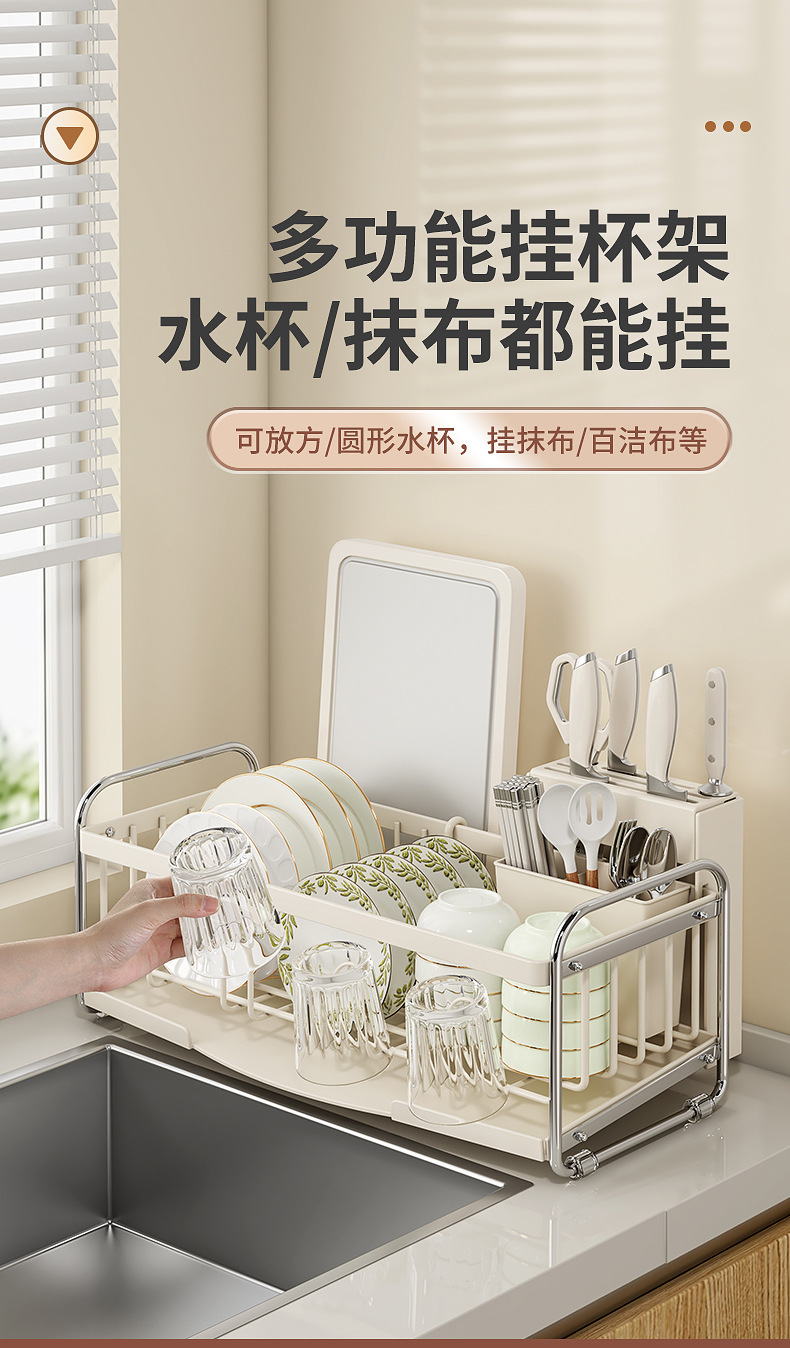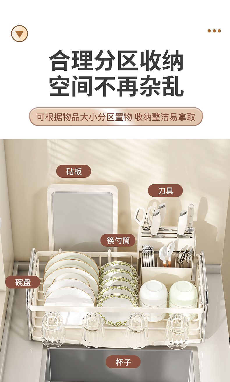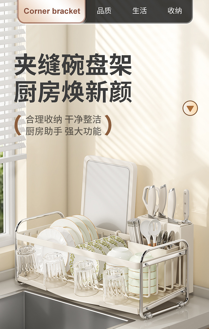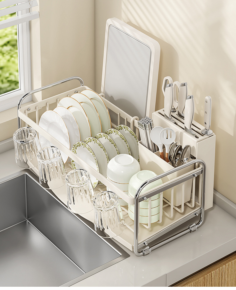 【喜挖】 10件組 廚房檯面碗碟收納架多功能瀝水置物架刀架筷子筒瀝水防黴