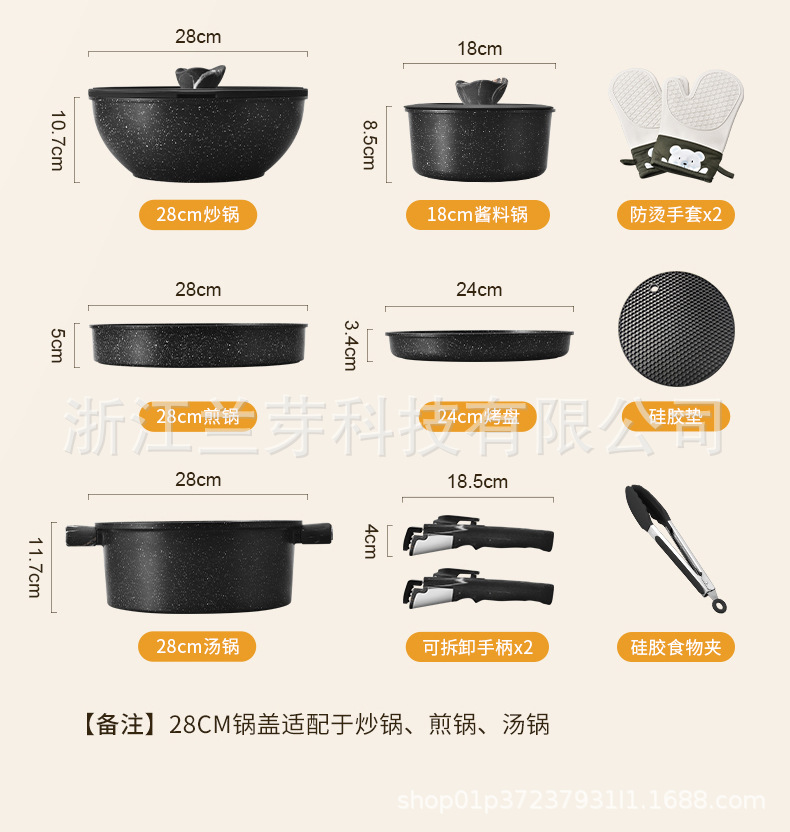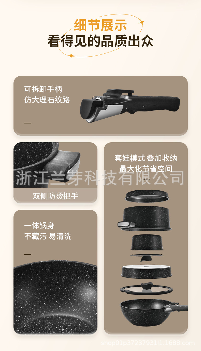 【喜挖】 10件組 新款通用不粘鍋廚具套裝鍋具套件不沾全套鍋pots可拆卸手柄鍋