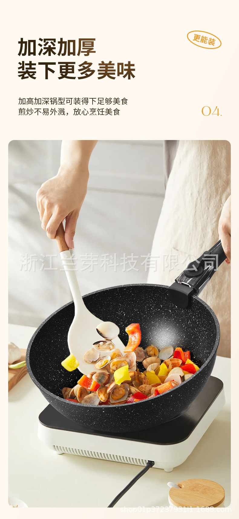 2.不粘廚具傳熱均勻,使用時只須用中至小火,便可烹調出美味食物。採用大火時,應注意避免燒到把手,且不可幹燒,鍋內必須有食物或水。