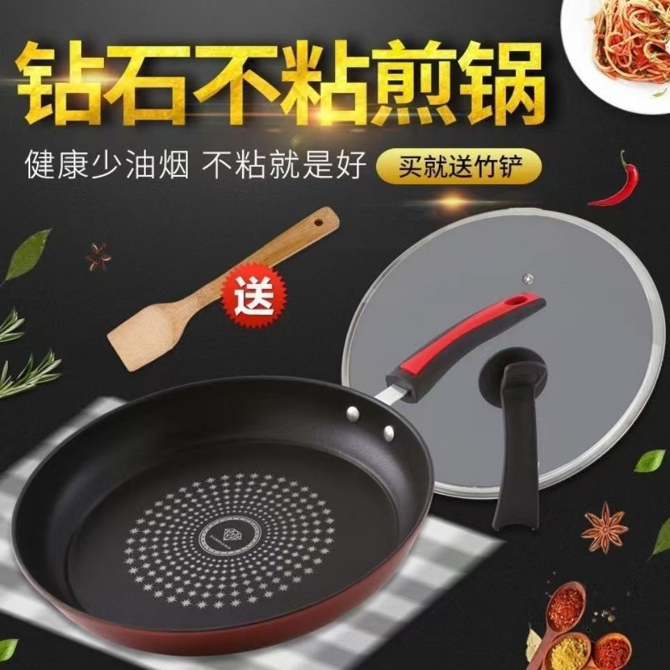 【喜挖】 10件組 晶鑽平底煎鍋不粘鍋無油煙鍋平底鍋烙餅電磁爐燃氣灶中式鍋家用