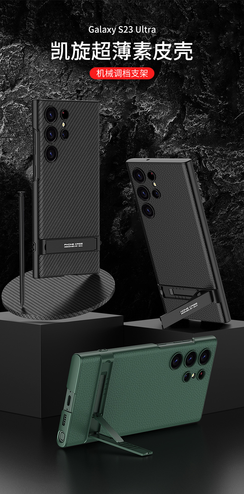 【喜挖】10件組 全新適用三星S23UlTra手機殼全包凱旋超薄素皮支架防摔素皮手機殼