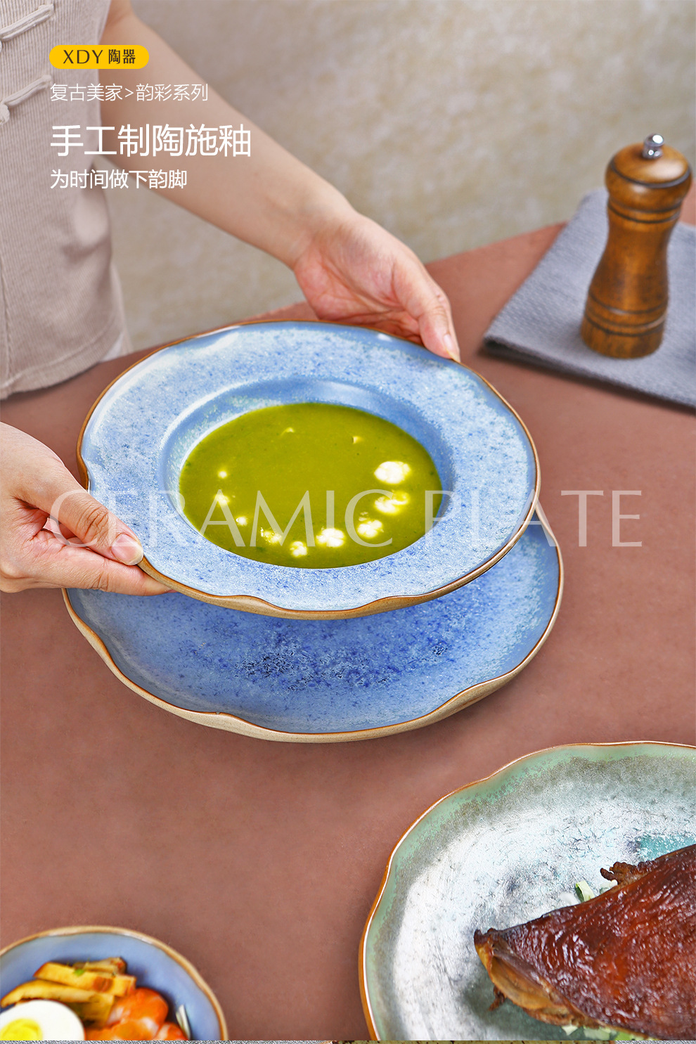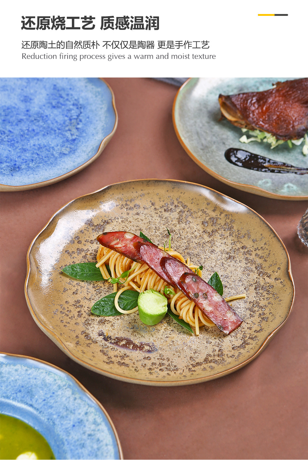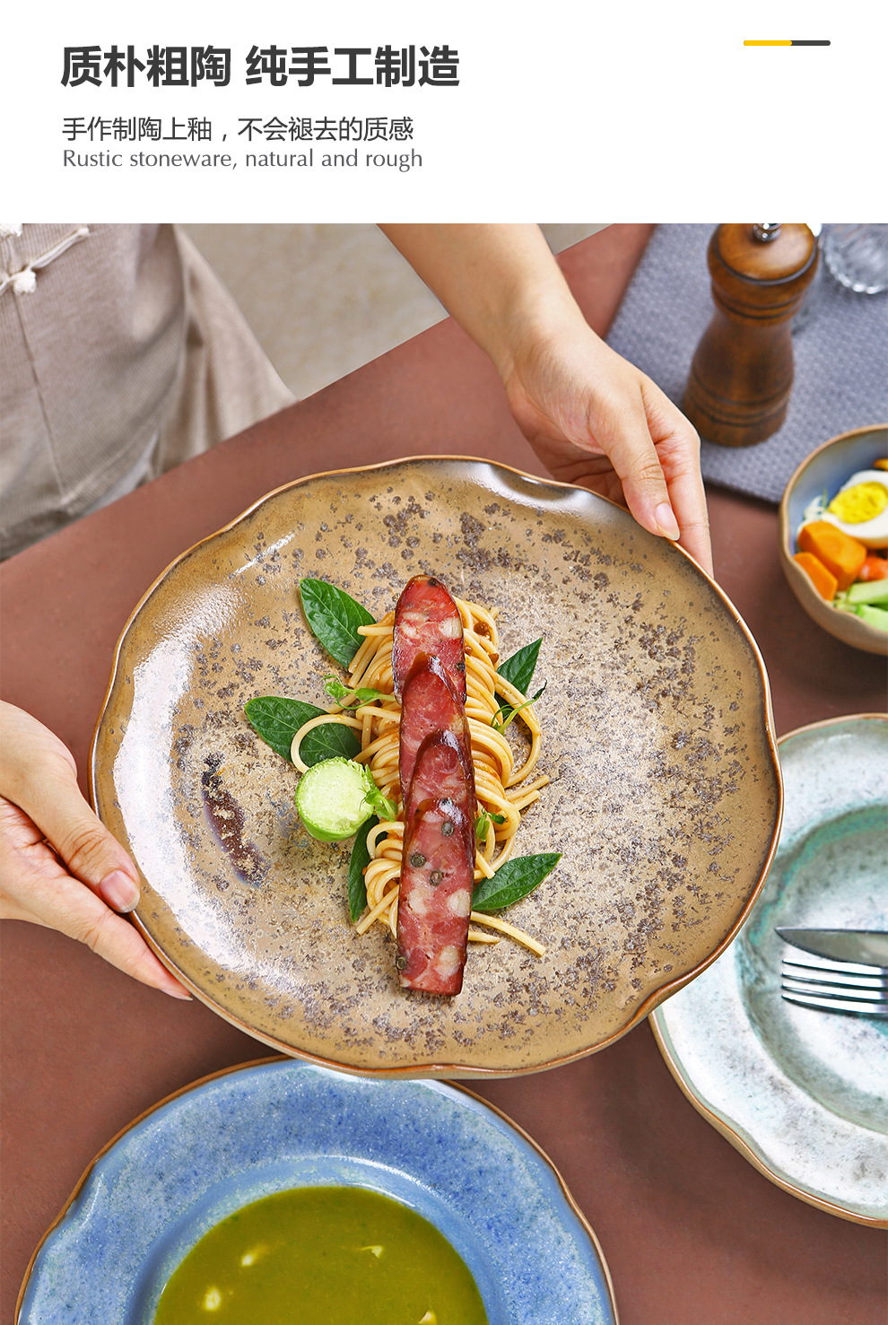 【喜挖】 10件組 家用復古陶瓷盤飯店餐盤義大利麵牛排盤手工製作雙耳盤蔬菜圓盤