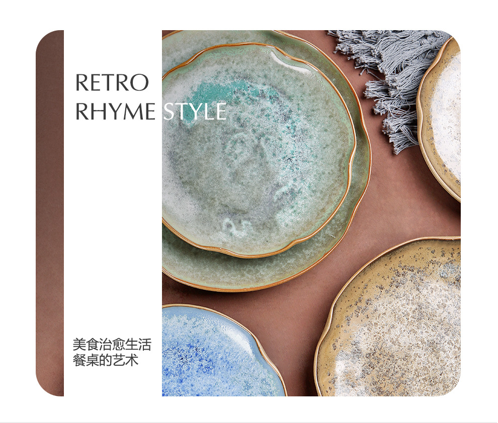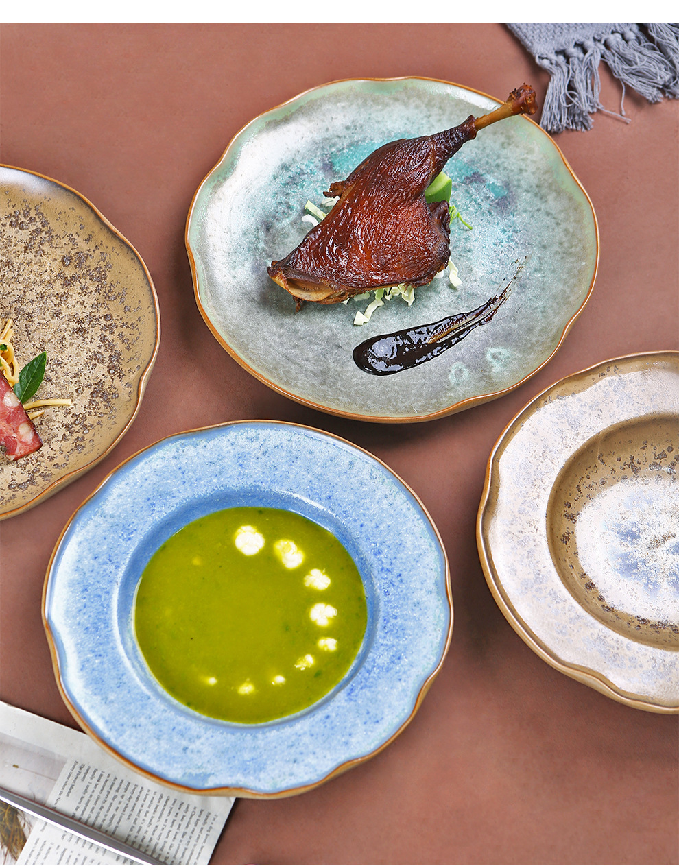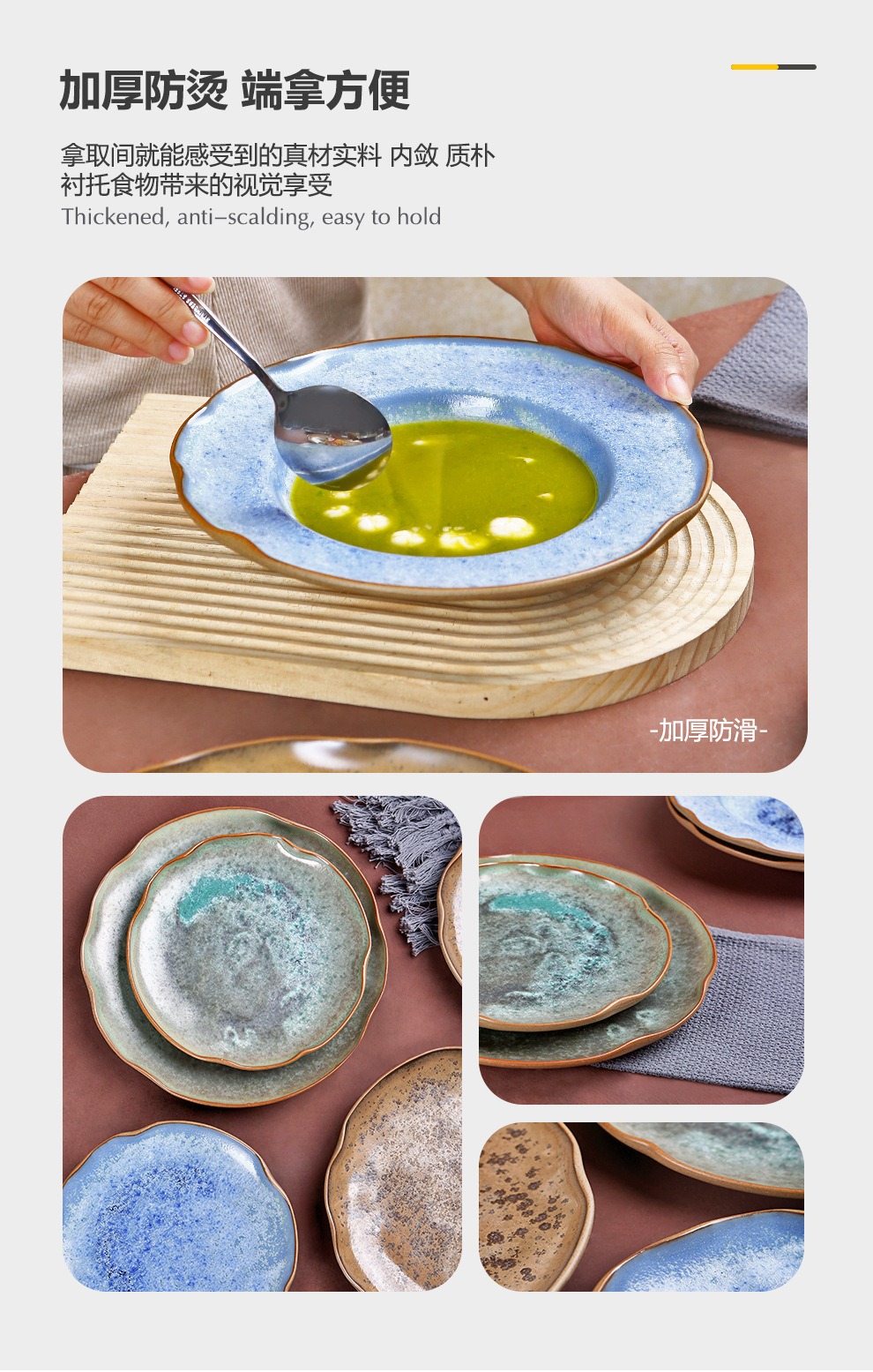 【喜挖】 10件組 家用復古陶瓷盤飯店餐盤義大利麵牛排盤手工製作雙耳盤蔬菜圓盤