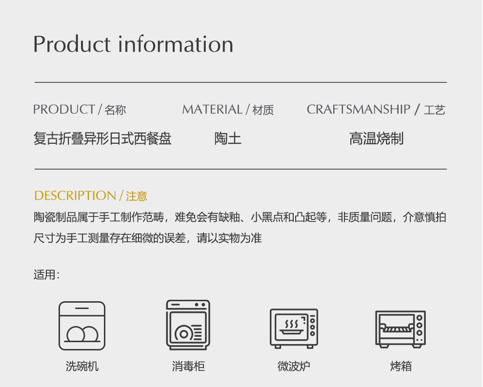 2.关于质量:陶瓷制品属于手工制作,可能存在轻微黑点、凹凸点、缺釉针孔等工艺附属情况,属于正常现象,不属于退换等范围内的质量问题,餐具并非艺术品,无法保证玩美,介意的宝宝慎拍;